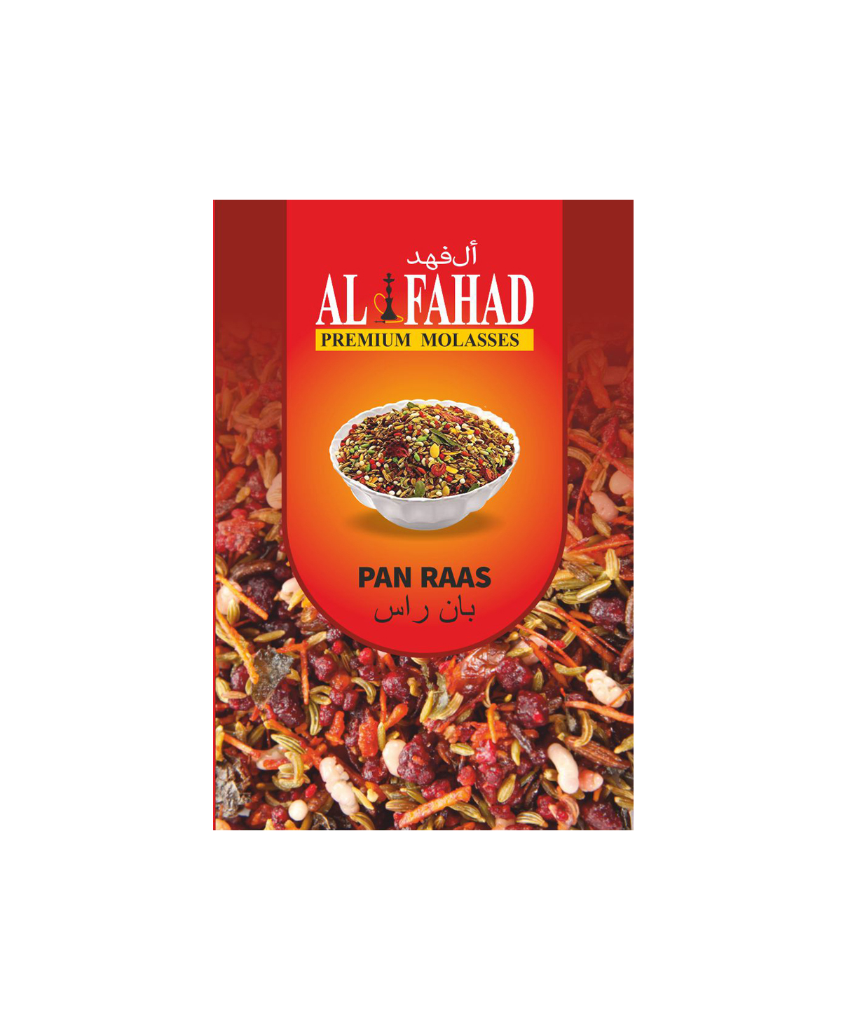 Alfahad “Pan raas” is a popular flavour originated from India and has a flavouring profile consisting various herbs and spices, such as betel leaf, fennel seeds, cardamom, and mint. The flavor is known for its refreshing and cooling properties, and it is often mixed with other flavors to create unique shisha blends